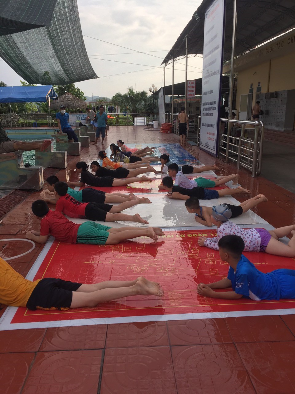 Các bạn học sinh vô củng thích thú với giờ học bơi